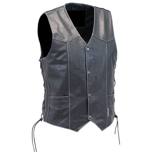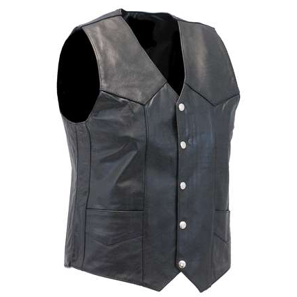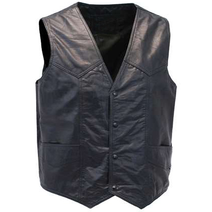 Black denim vest for men with snaps. An ideal sleeveless jacket style club vest. - two inside vertical entry CCW pockets