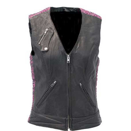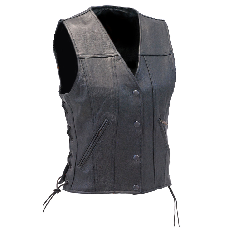 Here is one premium black cowhide leather vest with dual gun pockets,