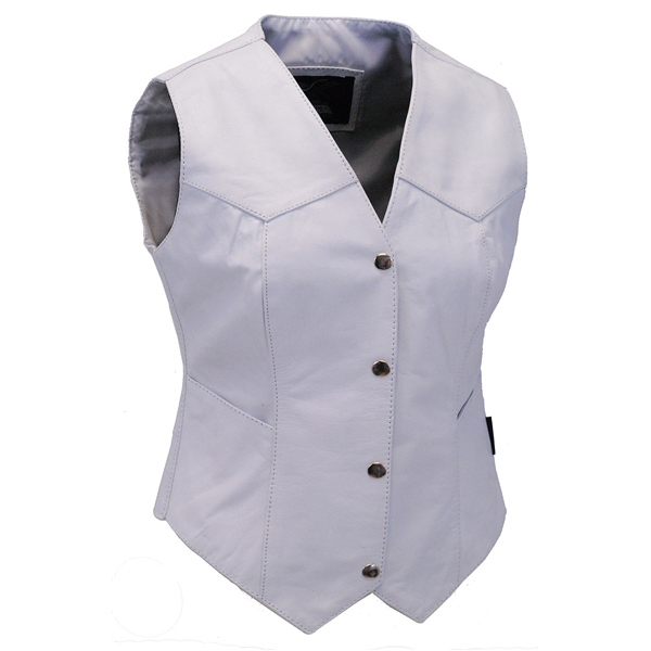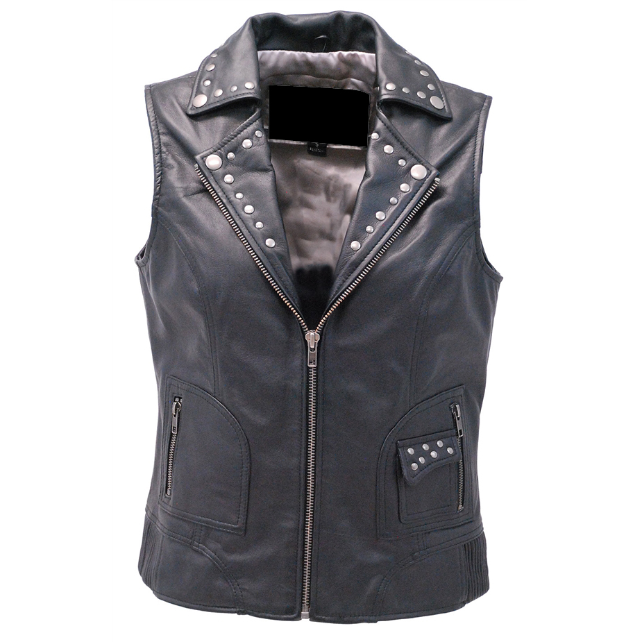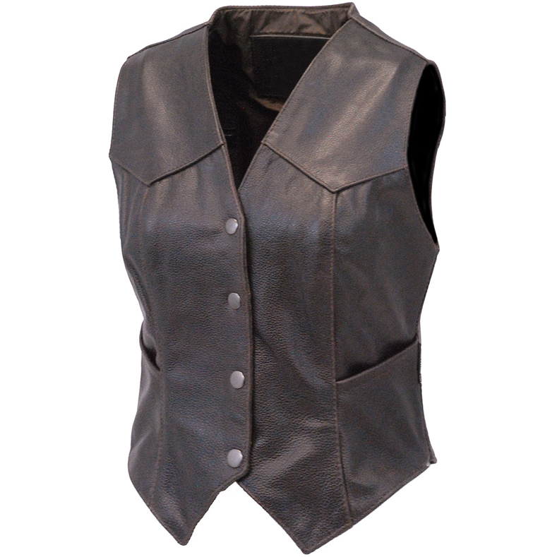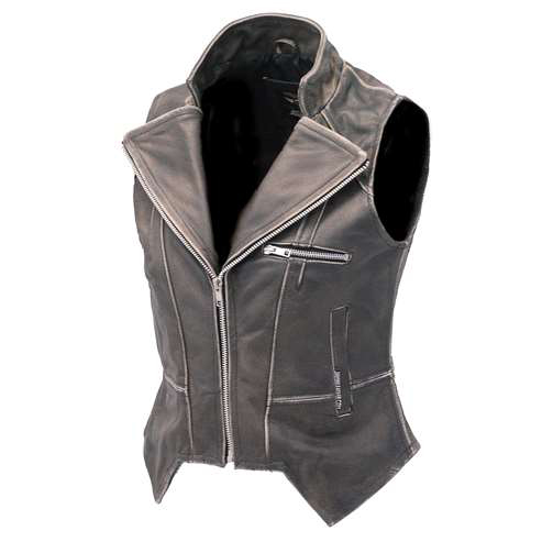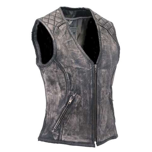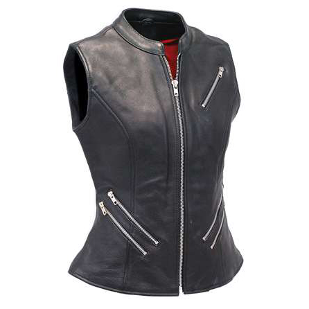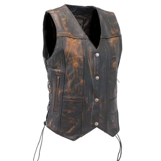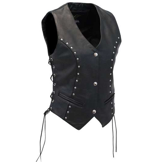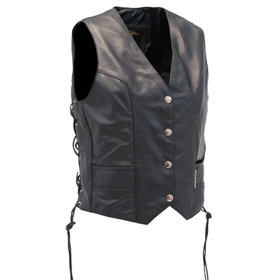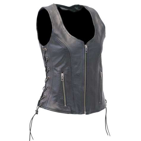 Womens heavy black naked leather side lace vest with dual CCW pockets, and two zip front pockets for the serious lady. - dual CCW inside pockets with snap and barrel loop inside